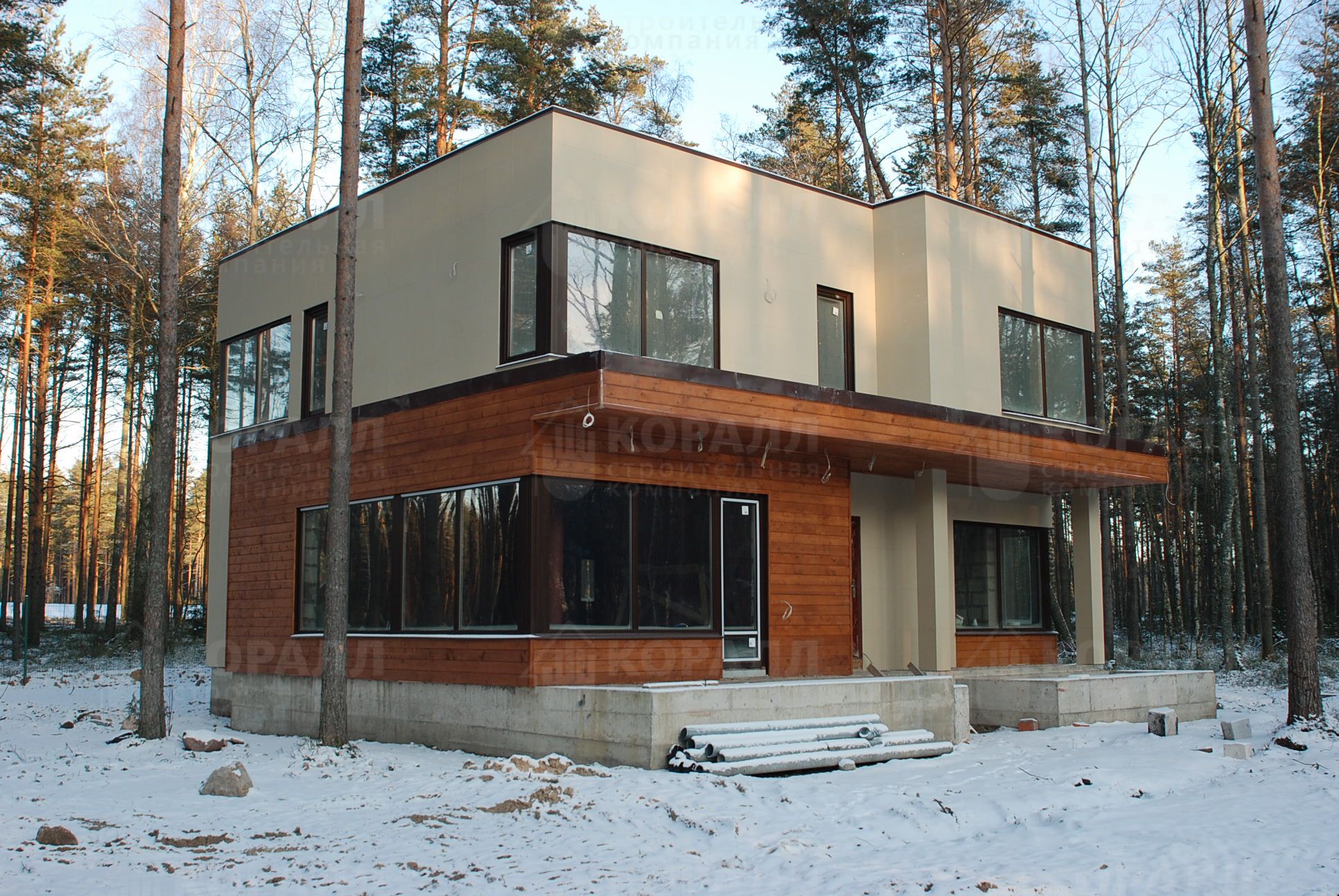 - Фасады дома облицованы матовым керамо-гранитом.