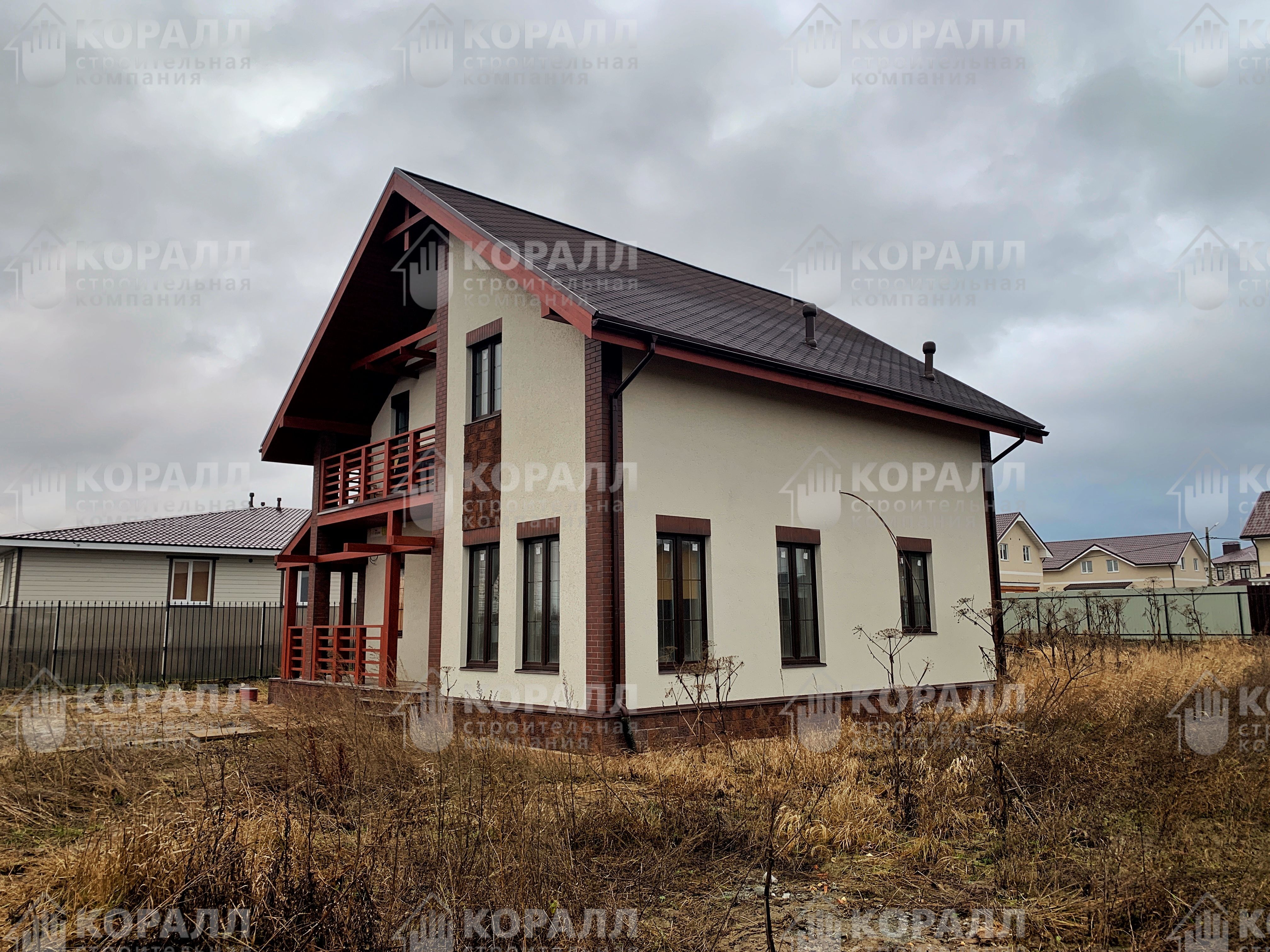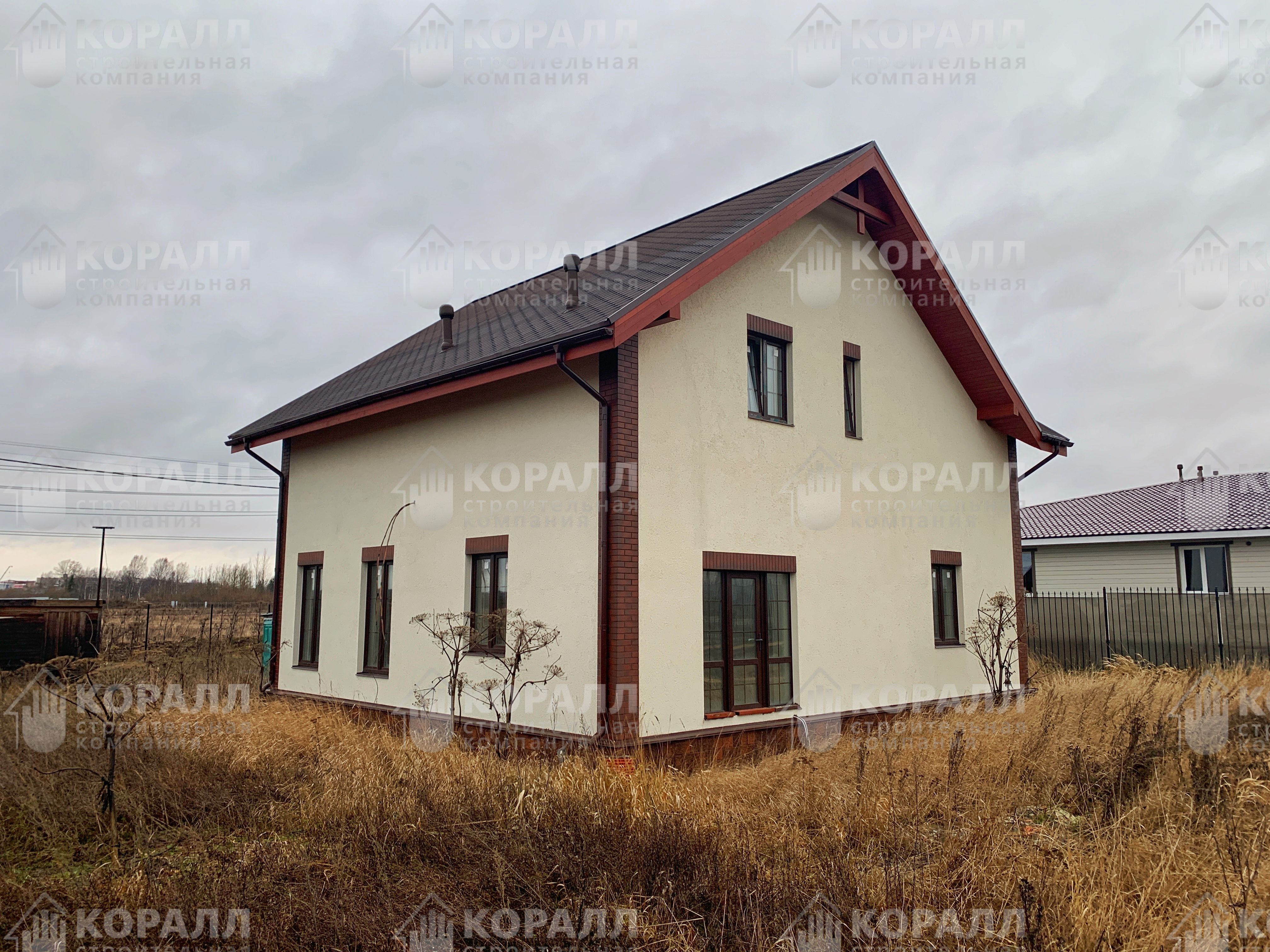 Компактный двухэтажный дом построен в коттеджном посёлке в д. Фёдоровское Ленинградской области. Коттедж общей площадью 170м2 выполнен по индивидуальному проекту.